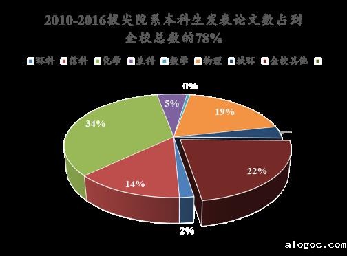 2010-2016年,拔尖院系本科生公开发表科研论文1382篇(其中拔尖院系本科生为国际核心期刊第一作者达309篇,占总发表数的22%)。