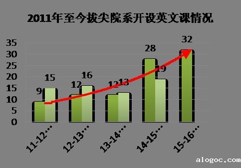 2011年起,拔尖院系累计开设本科生非语言类的外语授课课程156门次。