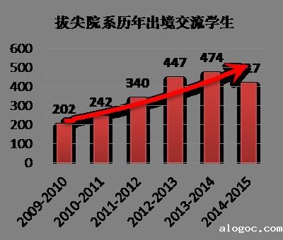 计划实施以来,拔尖院系年均出境交流人数比实施前增长一倍。