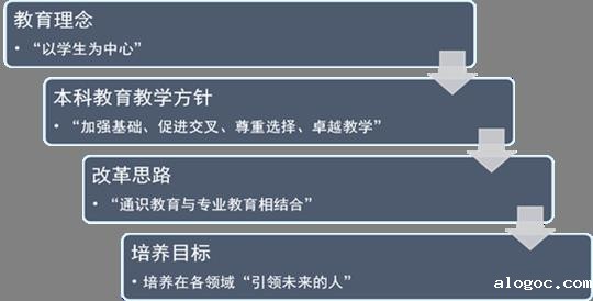 • 育人全面化:专业教育与通识教育、实践教育、理想教育相结合。各院系通过“第二课堂”,根据专业特点,建立多种形式的实践开展社会实践教育平台,为培养学生提供发现和尝试解决问题的能力平台,锻炼学生学以致用的能力,进而引发学生更深层次的思考。