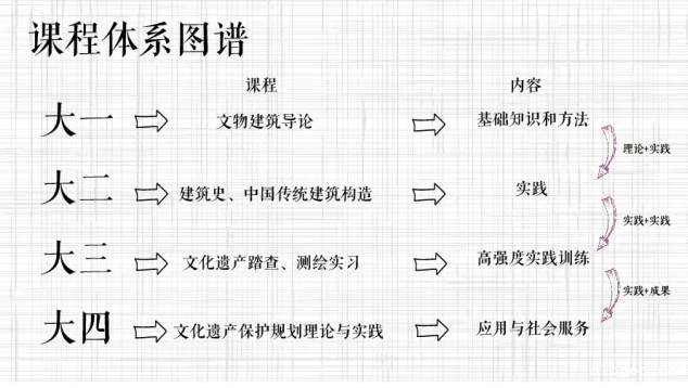 三年级集中安排学生对不同地区、不同类型和不同时代的文化遗产对象,尤其是文物建筑类遗产进行高强度记录训练,一学期内每个学生执行不少于150次(即150处古建筑群或文化遗产地)的现场信息记录训练,包括文物建筑的形制记录、现场文献史料记录、居民访谈记录、文化遗产环境及保护利用信息记录。