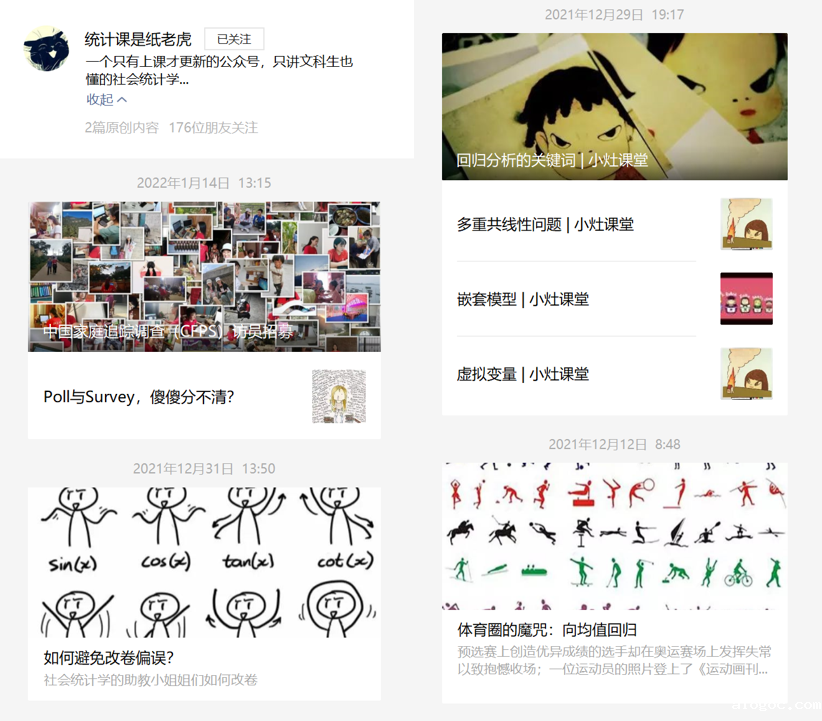 “社会统计学”课程设立课程公众号“统计课是纸老虎”,根据课程进度不定期推送相关的趣味统计知识、社会调查知识或学习经验的短文,拓展学生的兴趣。