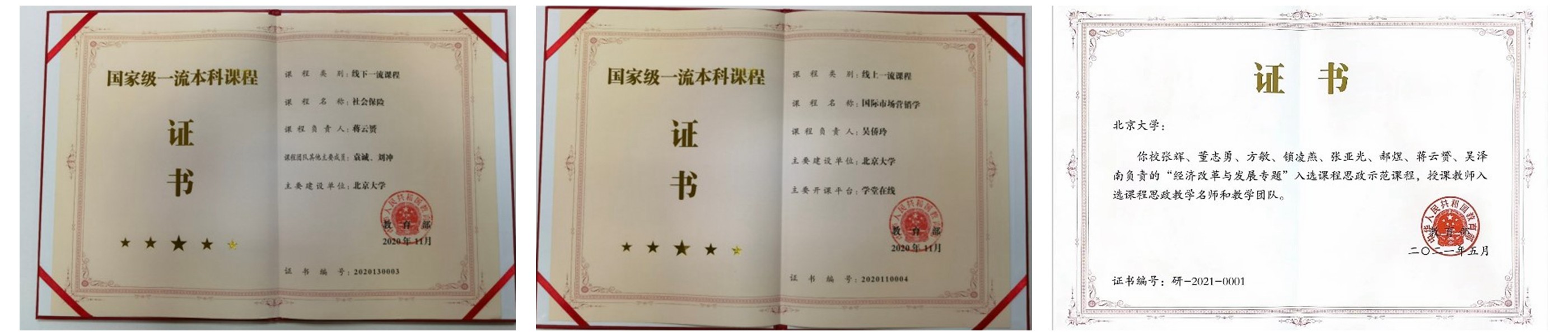 经过不断地探索,经济学院形成了一批优秀的教学成果。如“社会保险”“国际市场营销学”“经济改革与发展专题”“保险学原理”等课程获得国家级、省部级课程称号,《经济学原理(微观部分)》数字化教材、《货币搜寻理论十四讲》《经济学原理(宏观部分)》课件等获评北京高校“优质本科教材课件”“计量经济学”教学团队获评“北京高校优秀本科育人团队”;《经济学实验教学∶让学生在实践中学习》成果获全国教育改革创新先锋教师奖。