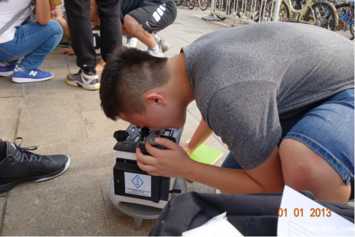 我们首先在理科二号楼门口选取了第零个点作为基准点,测了此点的重力值。然后大家收拾好东西,小心翼翼动作轻缓地将重力仪抱在怀里保护着,不敢大角度将之倾斜,跟随着冯老师和张老师去往未名湖畔的另外三个点。