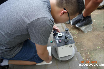 我们到达事先选定的位置,放置好仪器,开始着手测数据。整体的操作流程是这样的,首先需要检查仪器状态,是否稳定在正常工作温度范围内,否则由于弹簧热胀冷缩会造成测量不准确,然后检查电压是否正常。其次是仪器架设,在待测点将铝盘放在平整坚实的地面上,尽量保证底座水平稳定,取出重力仪轻放在铝盘上。再次是调平,调节面板上的三个水平调节按钮,使相互垂直的两个水平液管中的气泡分别位于正中位置。接下来是读数测量,观察Beam指针位置同时旋转读数盘,直至指针达到平衡位置,之后先稳定一段时间再读数,稳定后逆时针旋转锁定旋钮迸行锁摆。我们按照这个流程,分别测了此点的重力数据。