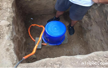 连好线后,在摆上扣上一个桶,相当于给它带一个施工的安全帽。同时在线上套上塑料套管,这样可以避免人为的挖掘或者老鼠的啃食破坏了导线。正是由于我们仪器的精密性,所以我们应当给予其更多的保护。摆放完毕后,连好各个仪器的之间的线路,第一个阶段就算完成了。