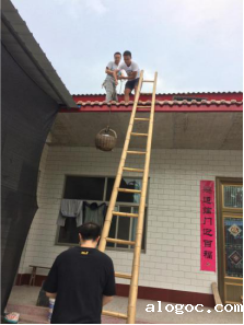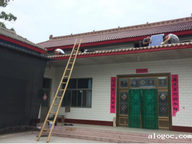 接下来要处理的问题是,找个合适的位置放置GPS和太阳能板。当然最合适的位置肯定是房顶之上,在房顶之上,视野开阔,少遮蔽物,的确是属于放置GPS和太阳能板的不二选择。向老乡家借来了长梯,同学们和助教不惧高度和困难,攀爬到房顶上。架设好了GPS和太阳能板。其中也要感谢那位老爷爷,不仅给予我们工具,而且在布置太阳能板时,提供了帮助。完成之后,连接好电源,大家就齐心协力把土填上,盖上一层塑料布,使得坑内的中心位置高出四周。
