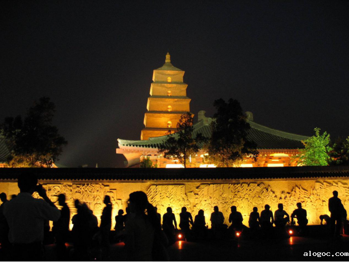 夜色将至,我们从西安地震局出发,一直沿着道路走到了大雁塔附近。远远望去,灯光与月色交错,夜景很是宜人。广场上小孩子们手里握着亮亮的小灯相互追逐打闹。沿着寺前的广场拾级而上,蓦然间脚被石头咯到,低头发现,是广场地上的石头雕刻成的字。细心观察发现,广场上有好多这种雕刻而成的字,而且有意思的是,市民们都在行走时不约而同地避开这些字。夜色中的大雁塔显得尤其瞩目,但除去炫目的光亮,还是能够感受到它蕴含的古典庄重的气韵。一千三百余年,王朝更替,历史不会为任何一个朝代停下脚步,人类的智慧却见证了历史的演变。一院寺,一座塔,历经千年,写满王朝的兴衰,写尽人世的沧桑。相传唐贞观时,玄奘携经卷、佛像和舍利,载誉回到长安,大慈恩寺落成,玄奘任该寺首任主持,兴建大雁塔,用于收藏从天竺带回的舍利、佛像和经卷,并专心致力于佛经翻译事业。于玄奘而言,心中的那座那烂陀寺有着无穷的魅力,信仰是永恒的动力也是奇迹的源泉,不可谓不坚毅勇敢,一十七载,声名显赫于菩提却毅然携真经回归故里,不可谓不安贫乐道。于每个人而言又何尝不是如此,拼尽全力去做自己认为正确的事情,在我看来,不可谓不幸福啊。