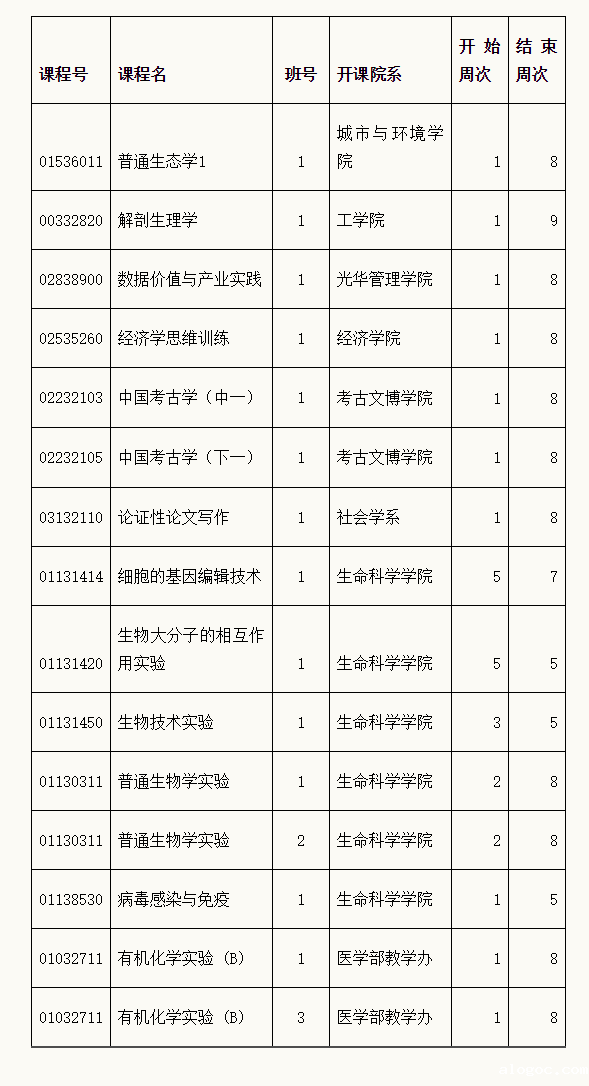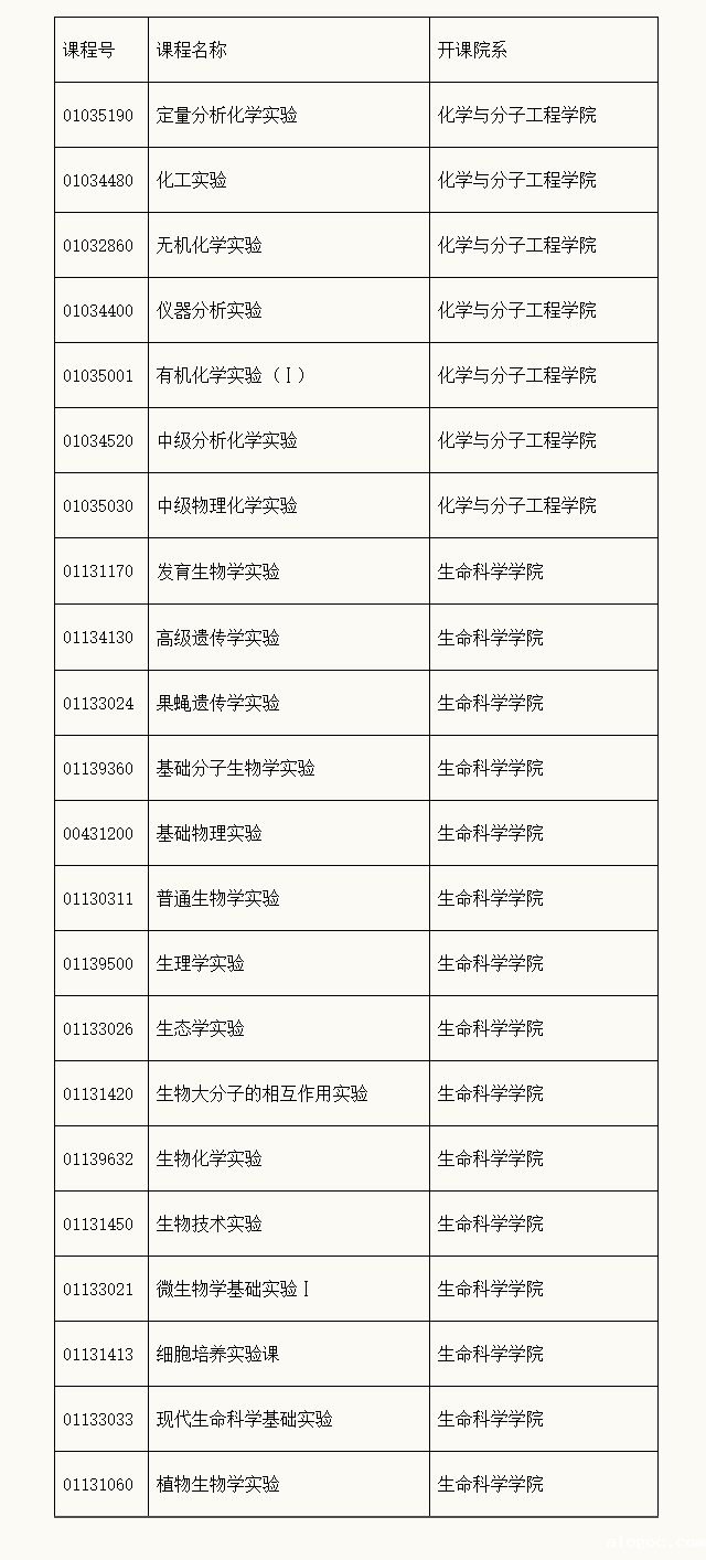 3.根据院系对实验课程的要求,生物、化学类实验课不允许中期退课,有以下课程: