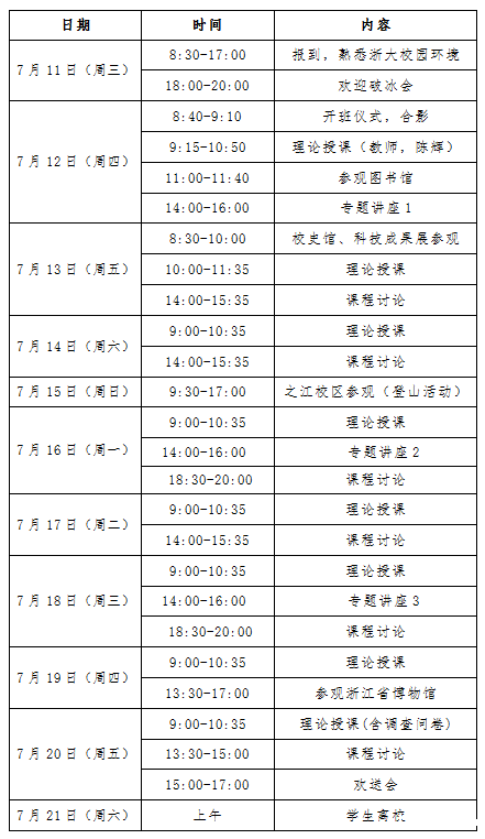 2. 课程学习及参观活动:见第四“C9暑期学校具体安排”。