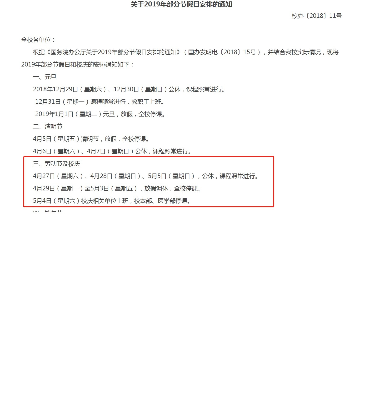 根据本学期校历安排,4月29日至5月3日,全校放假。在此期间,网上申请成绩单功能照常开放,但受理时间延长。5月6日起恢复上班后,成绩单办公室将根据申请顺序尽快完成受理。望周知! 造成的不便,还请见谅!