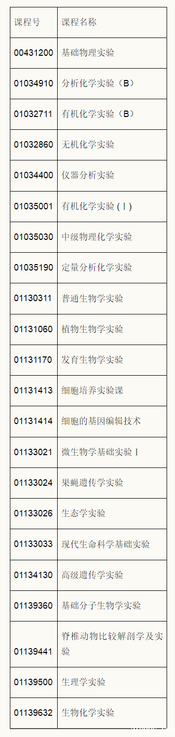 3.根据院系对实验课程的要求,生物、化学类实验课不允许中期退课,有以下课程:
