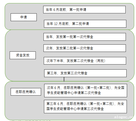 学生根据个人毕业后的就业和收入情况,在毕业后的3年内选择开始偿还本金的时间,13年内还清贷款本息。