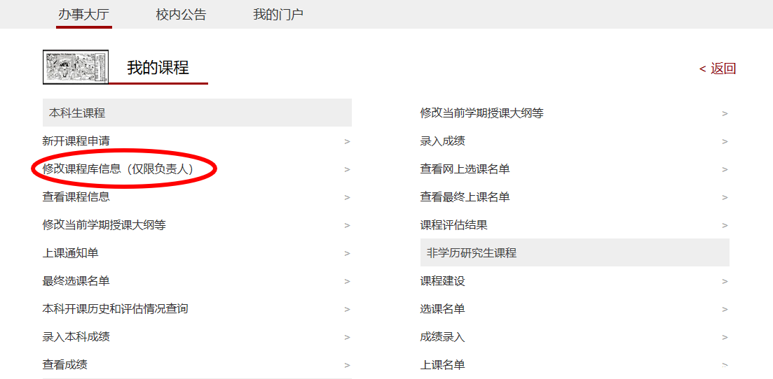 - 课程负责人和任课教师可以修改承担课程的课程大纲等信息,课程名等信息无法修改。